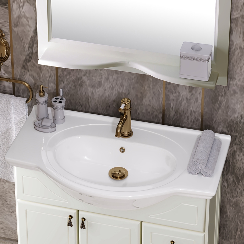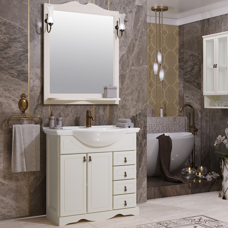 В комплекте поставки: тумба, раковина (фаянс), зеркало, светильник (2 шт.).