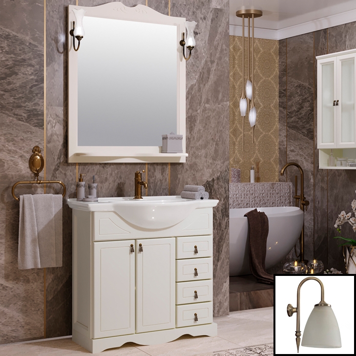 В комплекте поставки: тумба, раковина (фаянс), зеркало, светильник (2 шт.).