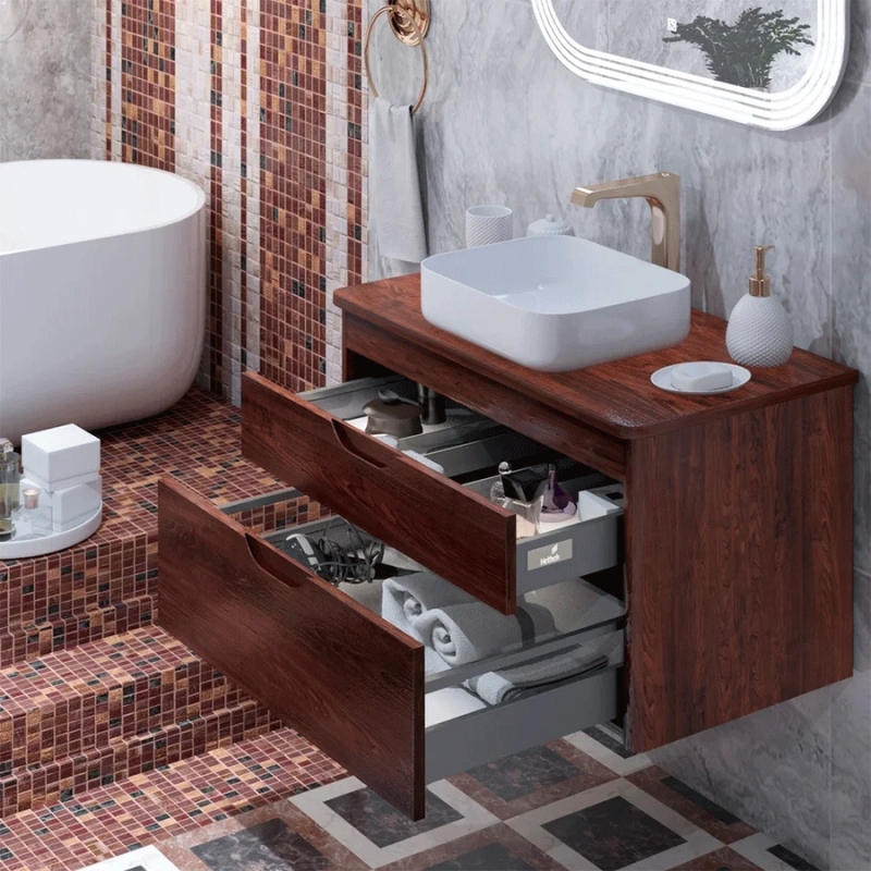 Подвесная тумба под раковину Opadiris Престиж 90 Z0000015149 с двумя выдвижными ящиками. Цвет: орех антикварный.
