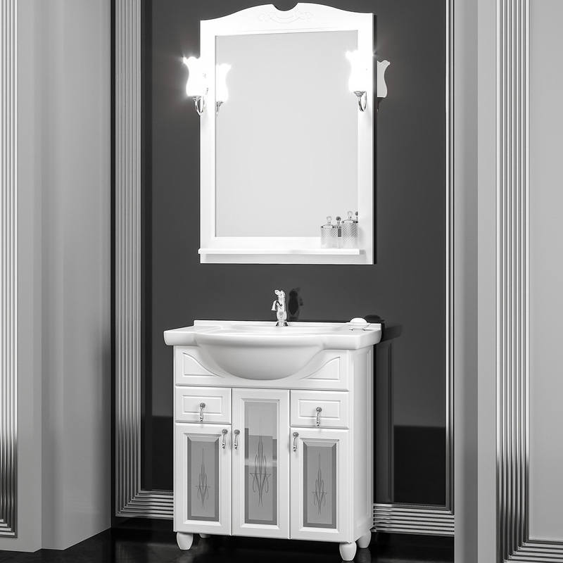 В комплекте поставки: тумба, раковина (фаянс), зеркало, светильник (2 шт.).