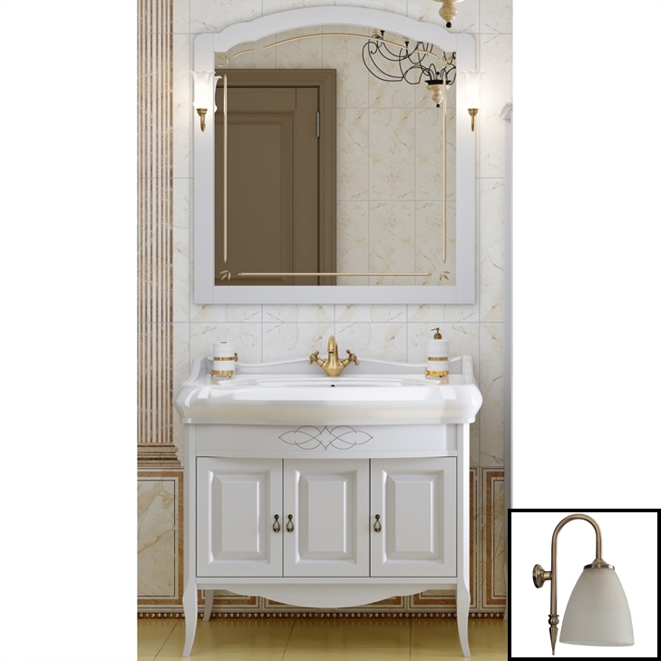 В комплекте поставки: тумба, раковина (литьевой мрамор), зеркало, светильник (2 шт.).