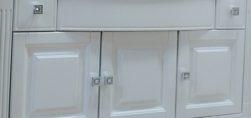 Выполнен в классическом стиле с плавными изогнутыми формами и изящными гнутыми ножками. Фасадные элементы украшены резными узорами. Особую роскошь добавляют ручки инкрустированные кристаллами Swarovski.
