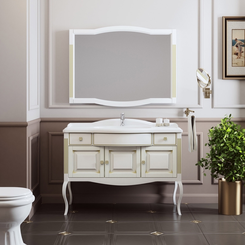 Тумба под раковину Opadiris Лаура 120 Z0000009324. Цвет: белый матовый с золотой патиной.