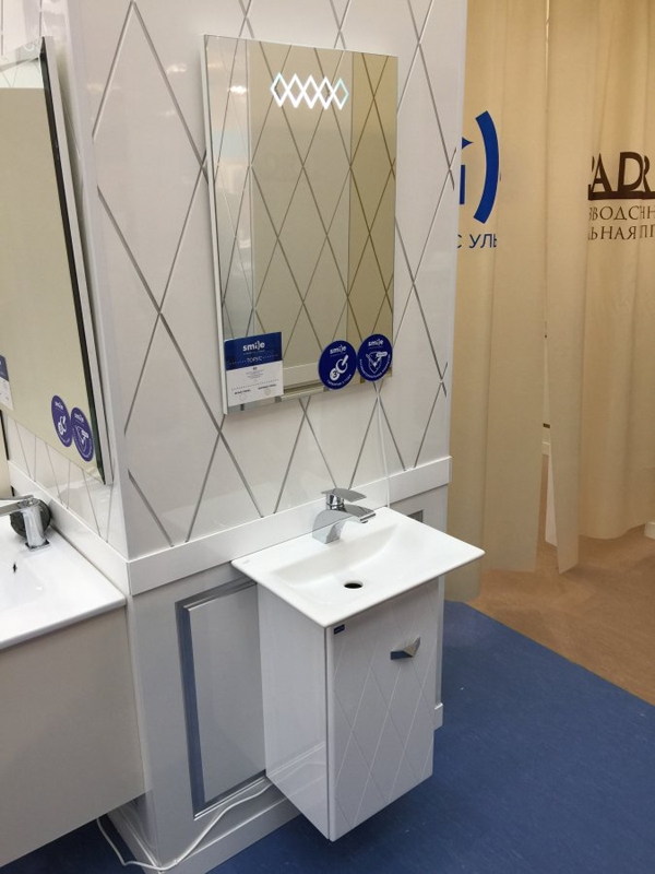 Стильная модель с ромбовидным узором фасада обладает лаконичным и функциональным дизайном. Прекрасно дополнит современный интерьер небольшой ванной комнаты.