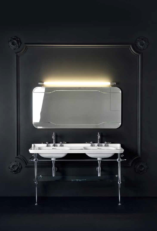 Металлическая консоль для раковины Kerasan Waldorf 9195K1cr, 150 см, со стеклянной полочкой.