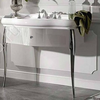 Тумба под раковину с ящиком Kerasan Retro 7363K4. Алюминиевые ноги золото, ручки золото с кристаллом. Цвет черный глянцевый.