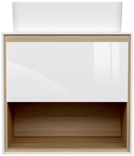 Тумба под раковину Cersanit Louna 80 SZ-LOU80-BL/Wh подвесная со столешницей выполнена в современном дизайне сочетающим чистоту белого цвета и натуральное дерево. Фрезерованная ручка, выдвижной ящик и удобная открытая полка для хранения.