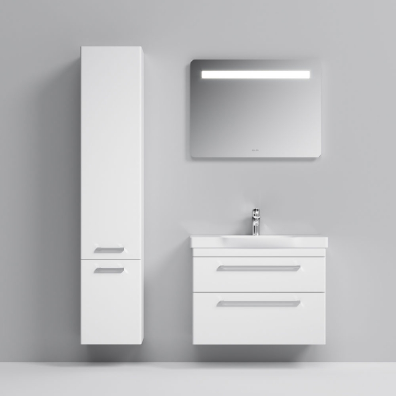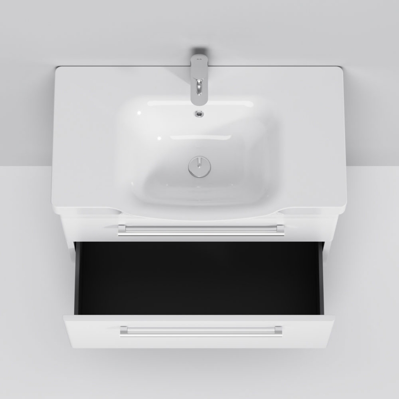 Подвесная тумба под раковину AM.PM Like S 80 M81FHX0802WG белая, с глянцевой поверхностью, с двумя выдвижными ящиками с хромированными ручками. Для длительного срока службы в ванных комнатах с повышенной влажностью.