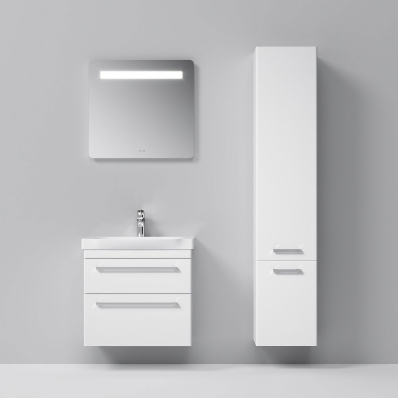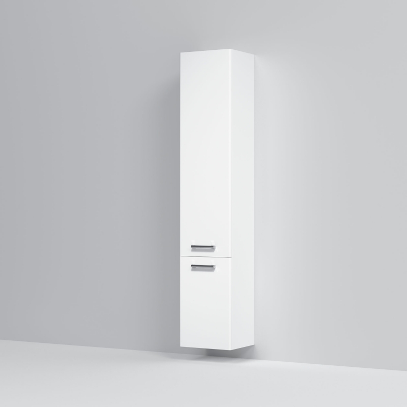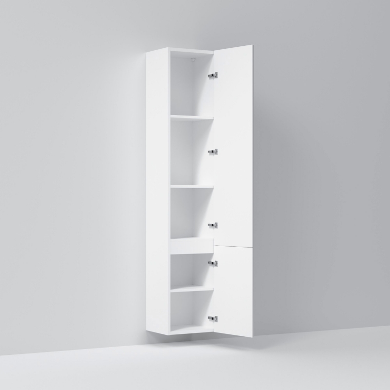 Шкаф пенал AM.PM Like S 35 R M81CSR0356WG белый, с глянцевой поверхностью, с двумя распашными дверцами (петли справа), с двумя ножками. Для длительного срока службы в ванных комнатах с повышенной влажностью.