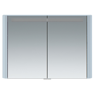 Зеркальный шкаф в ванную AM.PM Sensation 100 M30MCX1001BG с двумя распашными дверцами и двумя полками за ними, с подсветкой сверху, с розеткой и выключателем.