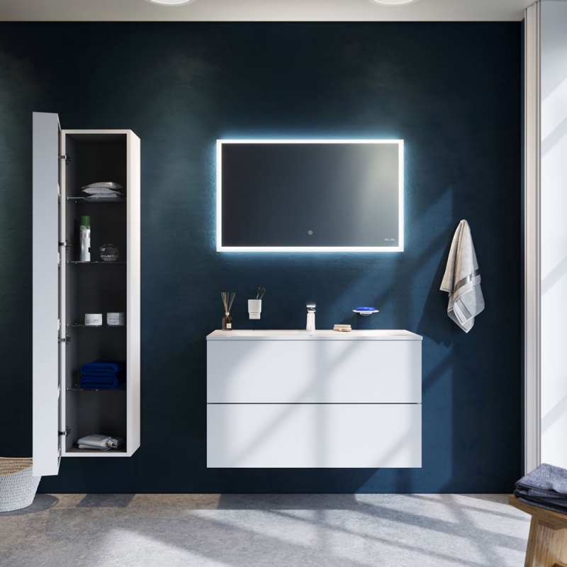 AM.PM Spirit V2.0 35 (M70ACHR0356WG) - шкаф-пенал созданный в стиле минимализма. Плиты шкафа сделаны из прочного и качественного МДФ материала, который покрыт адгезивным покрытием белого цвета. Внутри шкаф-пенал оснащен пятью полками защищенными пластиковыми бортиками и четырьмя стеклянными полками.