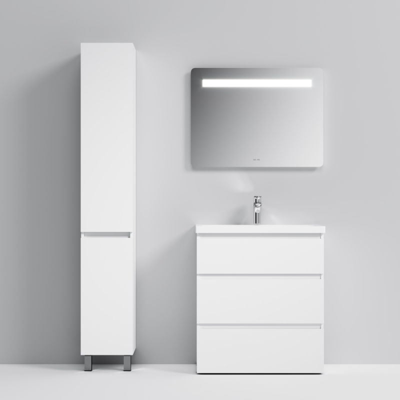 Тумба под раковину AM.PM Gem S 75 M91FSX0752WG белая, с глянцевой поверхностью, с тремя выдвижными ящиками, с двумя хромированными ножками, для длительного срока службы в ванных комнатах с повышенной влажностью.
