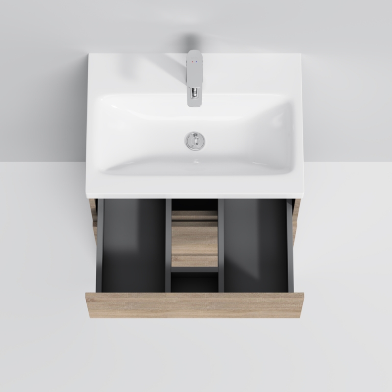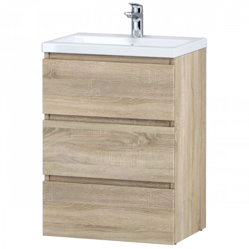 Тумба под раковину AM.PM Gem S 60 M91FSX0602OF светлый дуб, с тремя выдвижными ящиками, с двумя хромированными ножками, для длительного срока службы в ванных комнатах с повышенной влажностью.
