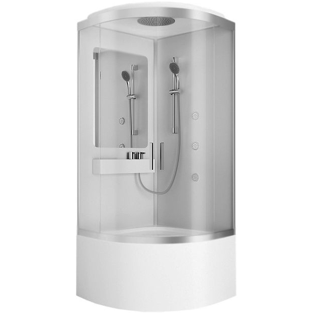 Гидромассажная стеклянная душевая кабина на глубоком поддоне AM.PM Like Deep 90x90 W80C-020A-090MTA угловая, в форме четверти круга, с двумя раздвижными дверьми. Дизайн от английского агентства DanelonMeroni. Глубокий поддон представляет идеальное решение вместо традиционной ванной. Встроенное зеркало визуально расширяет внутреннее пространство. Максимальный комфорт и наслаждение водными процедурами.