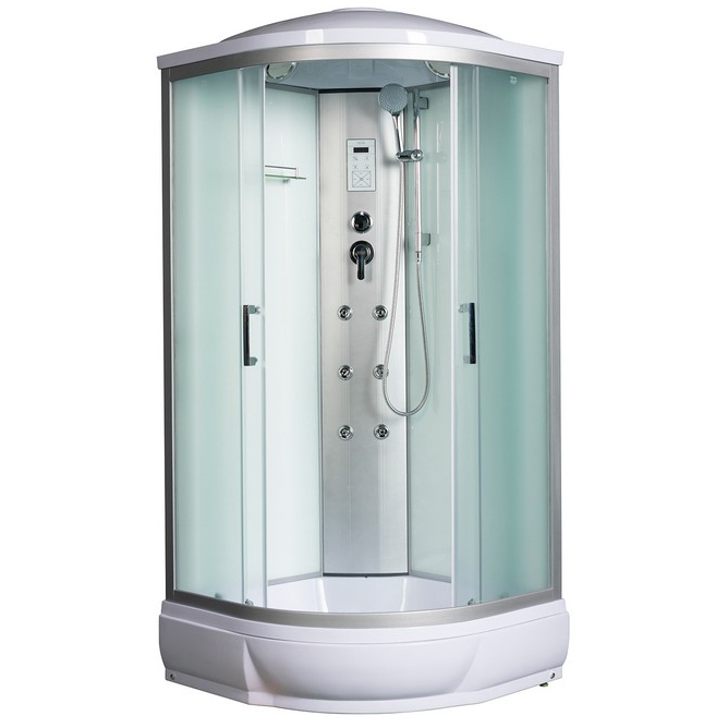 Душевая кабина River Dunay 100x100x26 МТ 10000000183+10000001450 превосходно сочетается в интерьере любой стилистической направленности за счет изысканных форм и плавных линий. Полотно двери выполненно из закаленного стекла толщиной 4 мм. Кабина оснащена стеклянной полочкой и ручным душем. На стенке, внутри душевой кабины установлена панель управления с сенсорным дисплеем. Данная модель имеет встроенные гидроизолированные динамики и радио.