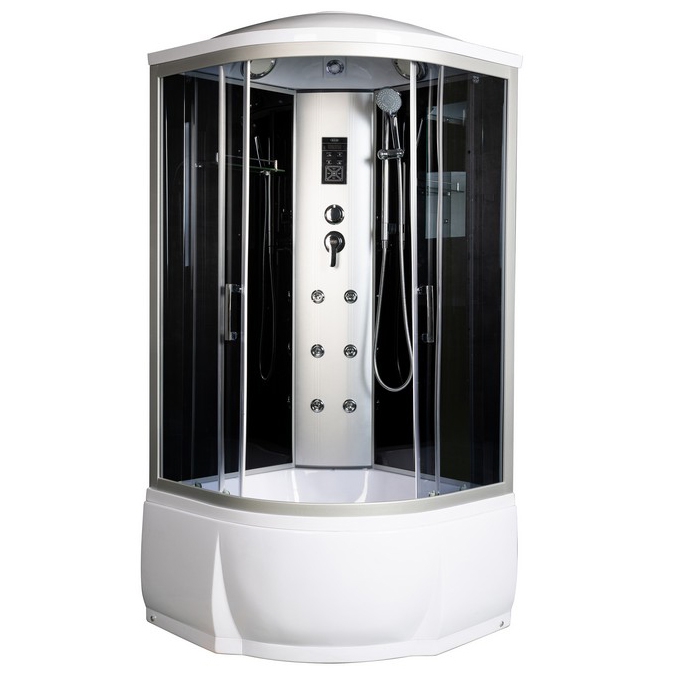 Душевая кабина River Dunay 80x80x43 ТН 10000003169+10000000845 превосходно сочетается в интерьере любой стилистической направленности за счет изысканных форм и плавных линий. Полотно двери выполненно из закаленного стекла толщиной 4 мм. Кабина оснащена стеклянной полочкой и ручным душем. На стенке, внутри душевой кабины установлена панель управления с сенсорным дисплеем. Данная модель имеет радио, встроенные гидроизолированные динамики.