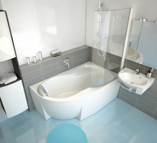 Акриловая асимметричная ванна Ravak Rosa 150х95 L. Подойдет для маленьких ванных комнат.