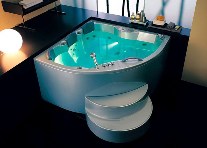 Изящная угловая ванна с плавными линиями безусловно станет ключевым объектом вашей ванной комнаты.