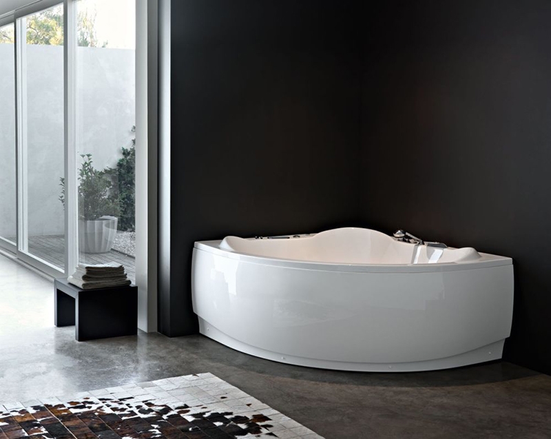Угловая ванна с плавными линиями украсит любую ванную комнату.