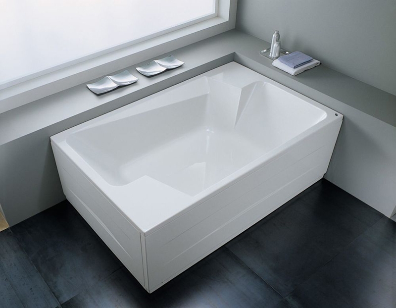Прямоугольная угловая ванна с плавными линиями украсит любую ванную комнату.