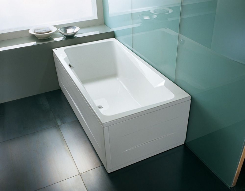Прямоугольная угловая ванна с плавными линиями украсит любую ванную комнату.