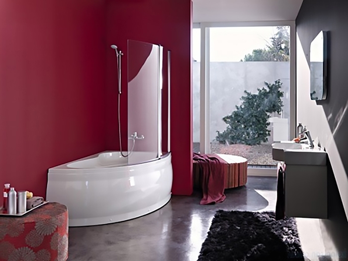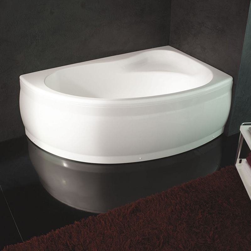 Асимметричная угловая ванна с плавными линиями украсит любую ванную комнату.