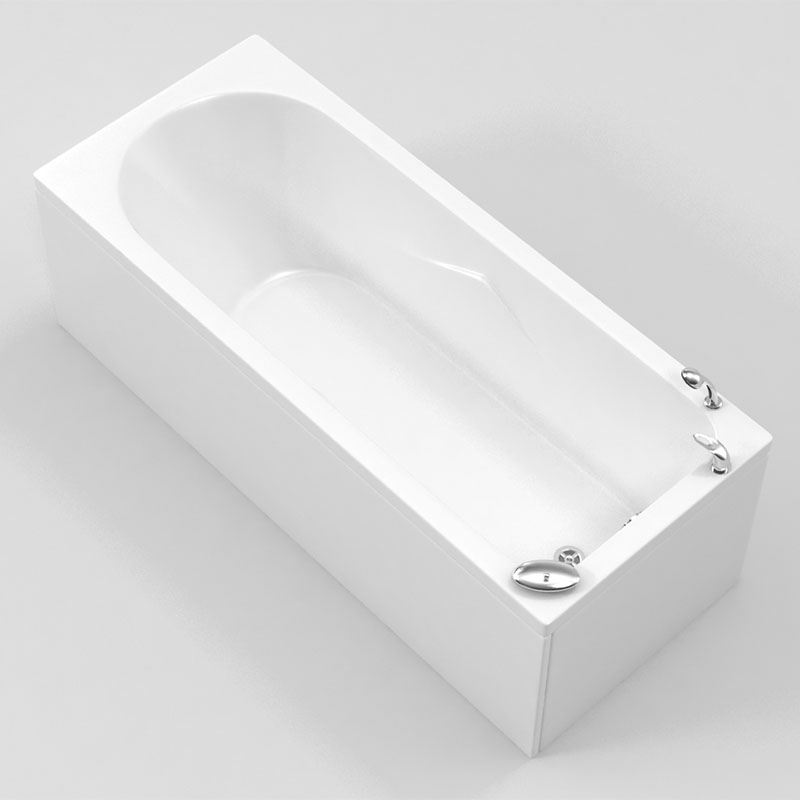 Белоснежная ванна выполнена из качественного акрила. Это материал с ровной и гладкой поверхностью, он не впитывает грязь и прост в уходе.