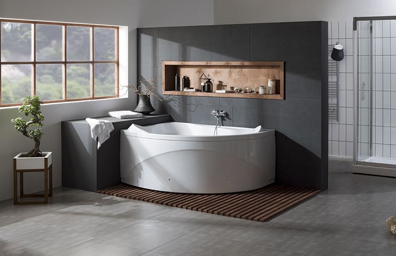 Вместительная ванна с изящным дизайном дополнит интерьер ванной комнаты в современном стиле.