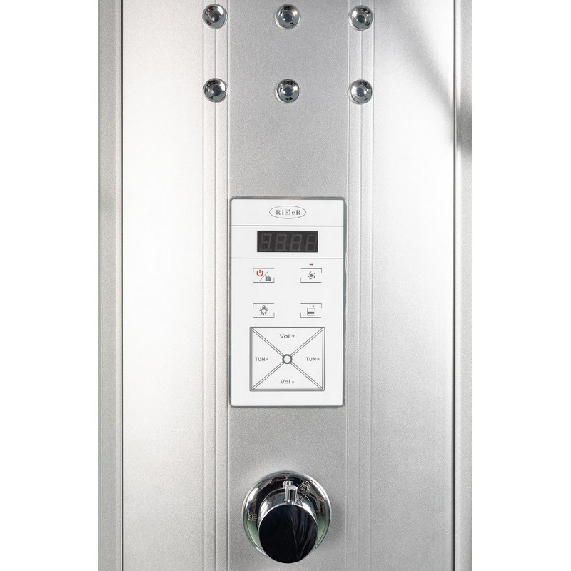 Душевой бокс River Dunay 150x80x50 МТ 10000000790+10000000771 превосходно сочетается в интерьере любой стилистической направленности за счет изысканных форм и плавных линий. Полотно двери выполненно из закаленного стекла толщиной 4 мм. Душевой бокс оснащен стеклянной полочкой и ручным душем. На стенке внутри душевого бокса установлена панель управления с сенсорным дисплеем. Данная модель имеет встроенные гидроизолированные динамики и радио.