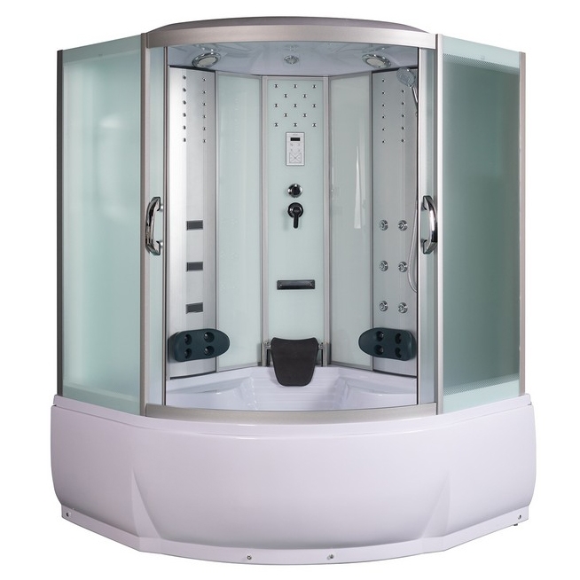 Душевая кабина River Temza 150x150x55 МТ 10000002238+10000000760 превосходно сочетается в интерьере любой стилистической направленности за счет изысканных форм и плавных линий. Полотно двери выполненно из закаленного стекла толщиной 4 мм. Кабина оснащена зеркалом, стеклянной полочкой и ручным душем. На стенке, внутри душевой кабины установлена панель управления с сенсорным дисплеем. Данная модель имеет встроенные гидроизолированные динамики и радио, а также возможность беспроводного подключения по Bluetooth 4.0