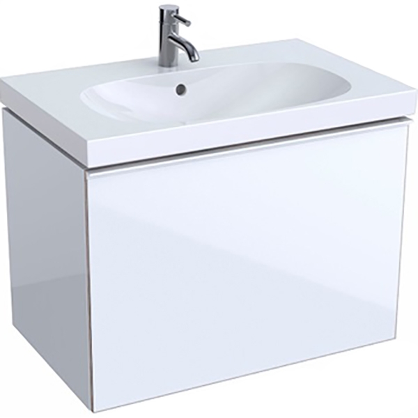 Тумба под раковину Geberit (Keramag) Acanto 500.611.01.2 подвесная, прямоугольная в современном стиле в цвете белый глянец. Передняя часть дверцы выполнена из стекла. Имеет один внутренний выдвижной ящик. Для использования в ванных комнатах с повышенной влажностью.