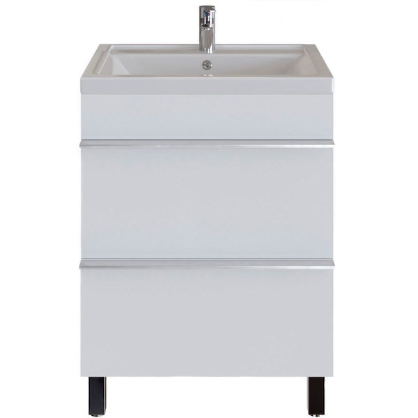 Тумба под раковину San Star Фостер 60, артикул: 57.1-1.4.1. Тумба выполнена в современном дизайне, имеет два выдвижных ящика для хранения ванных принадлежностей. Отлично впишется в ванную комнату в хай-тек или современном стиле. Тумба выполнена из влагостойких материалов, которым не страшны перепады температуры.Характеристики: