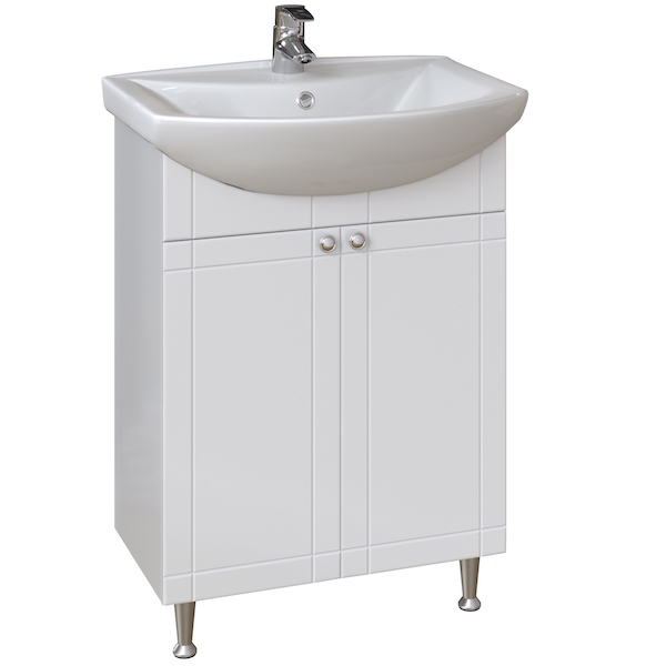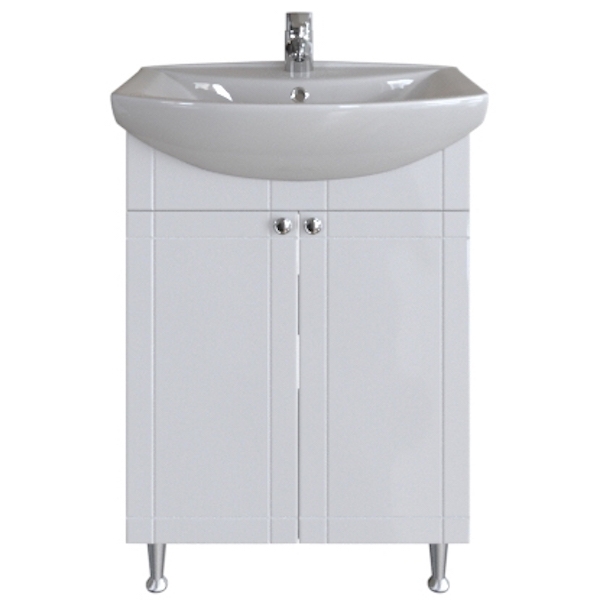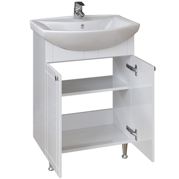 Тумба под раковину San Star Лира 60 46.1-1.5.1.. Тумба выполнена в современном дизайне. Фасад тумбы украшен фрезеровкой, дверцы имеют плавные доводчики, что добавит больше комфорта в повседневном обиходе. Тумба имеет две распашные дверцы и полочки внутри, чтобы хранить ванные принадлежности. Отлично впишется в ванную комнату в хай-тек или современном стиле.