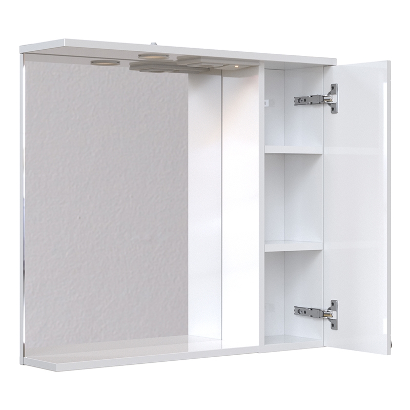 Выполнено в современном стиле и дополнит большинство интерьеров ванных комнат. Имеет распашную дверцу с механизмом доводчика. Фурнитура исполнена в цвете хром. Материалы устойчивы к влаге и перепадам температур. Шкаф оснащен светильником IP44, 220B, 4Вт, 4000К и розеткой, что очень удобно в повседневном использовании.
