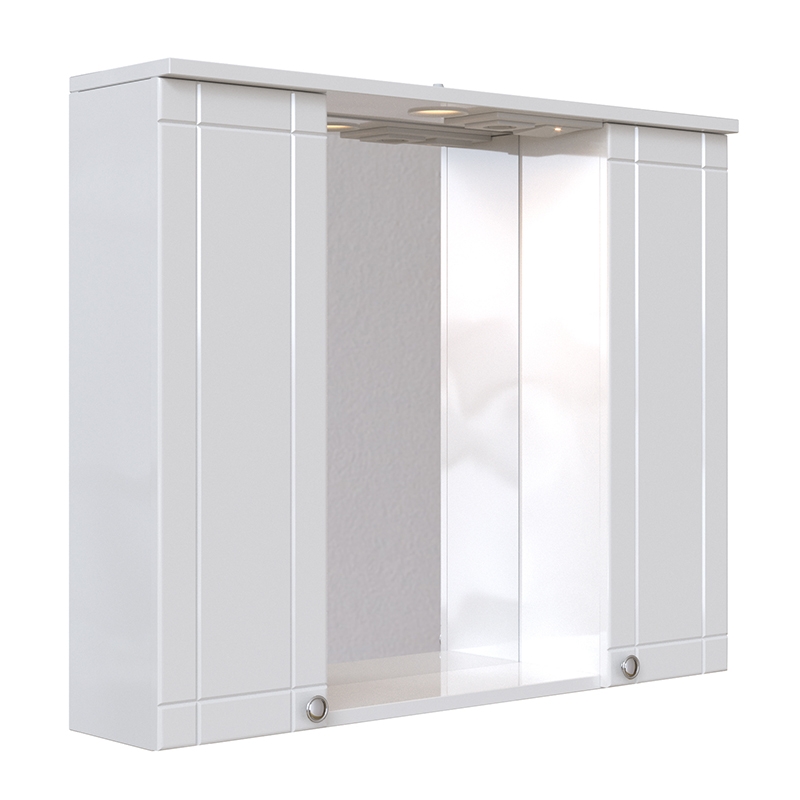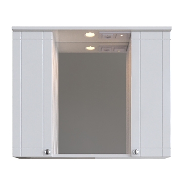 Выполнено в современном стиле и дополнит большинство интерьеров ванных комнат. Имеет две распашные дверцы с механизмом доводчика. Фурнитура исполнена в цвете хром. Материалы устойчивы к влаге и перепадам температур. Шкаф оснащен светильником IP44, 220B, 4Вт, 4000К и розеткой, что очень удобно в повседневном использовании.