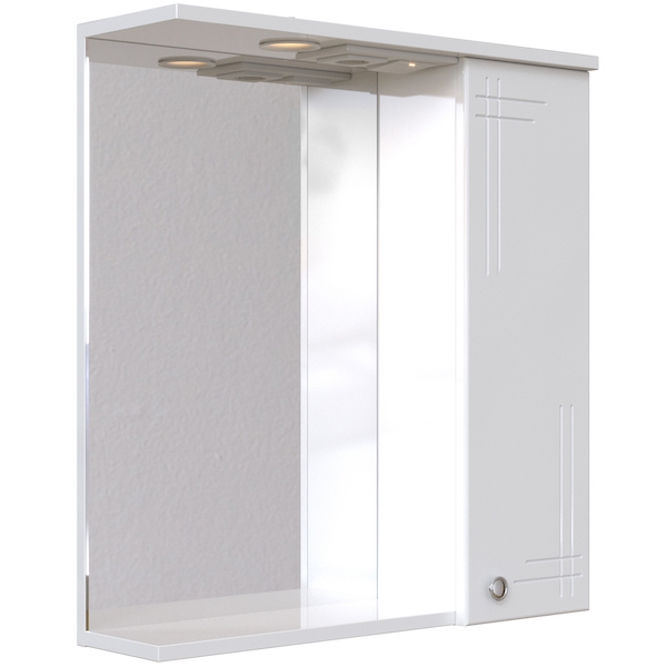 В комплекте поставки: Зеркало со шкафом, две полки, светильник, выключатель, розетка.