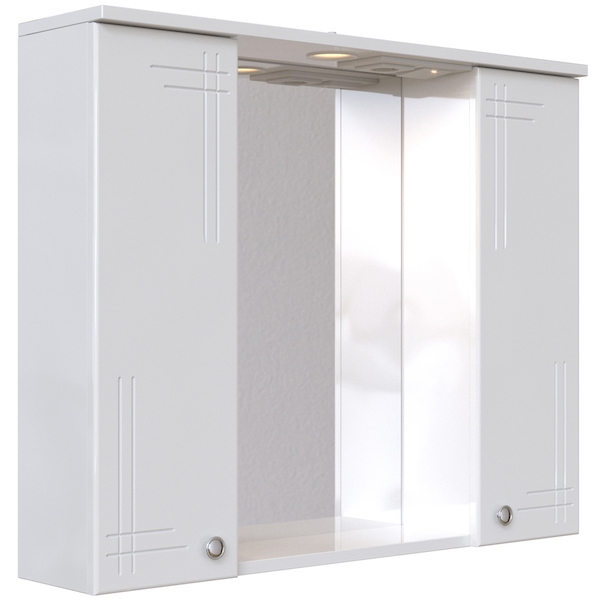 В комплекте поставки: Зеркало со шкафом, 4 полки, светильник, выключатель, розетка.