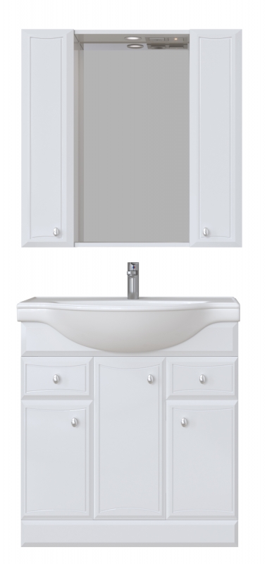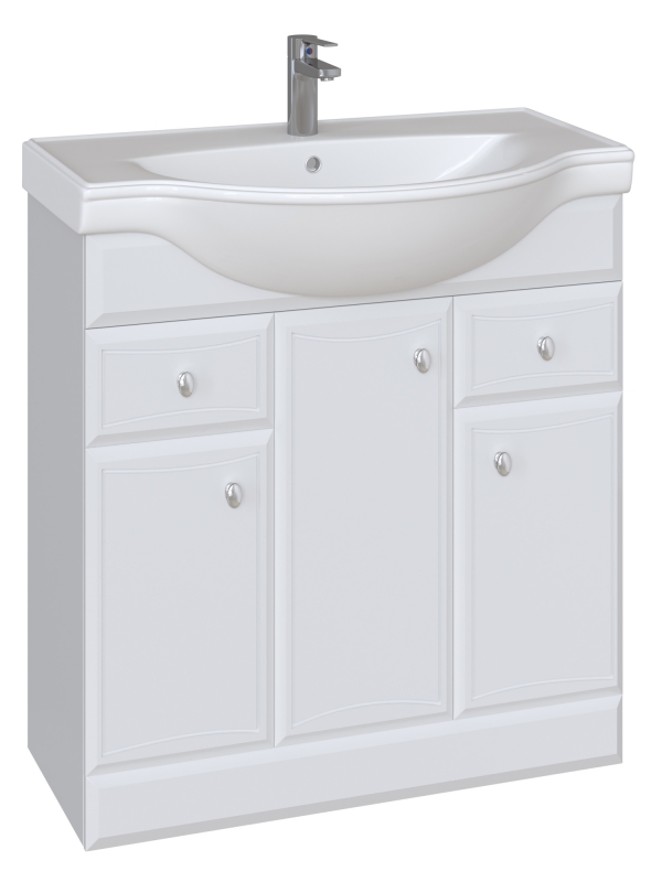 Тумба под раковину San Star Шармель 80 69.1-1.5.1. с тремя дверцами с механизмом доведения и двумя выдвижными ящиками.