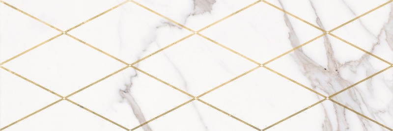 Керамический декор Lasselsberger Ceramics Миланезе дизайн Каррара Римский 1664-0141 20х60 см с сеткой из золотых ромбов подчеркивает благородный блеск эмали. Плитка по праву считается отличным выбором кафеля для стен в ванной, прихожей или санузле. В упаковке 5 шт.