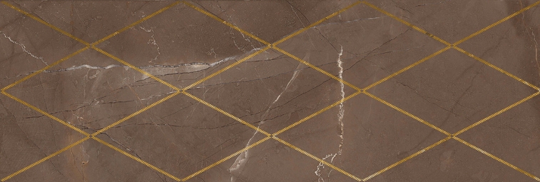 Керамический декор Lasselsberger Ceramics Миланезе дизайн Марроне Римский 1664-0147 20х60 см с сеткой из золотых ромбов подчеркивает благородный блеск эмали. Плитка по праву считается отличным выбором кафеля для стен в ванной, прихожей или санузле. В упаковке 5 шт.
