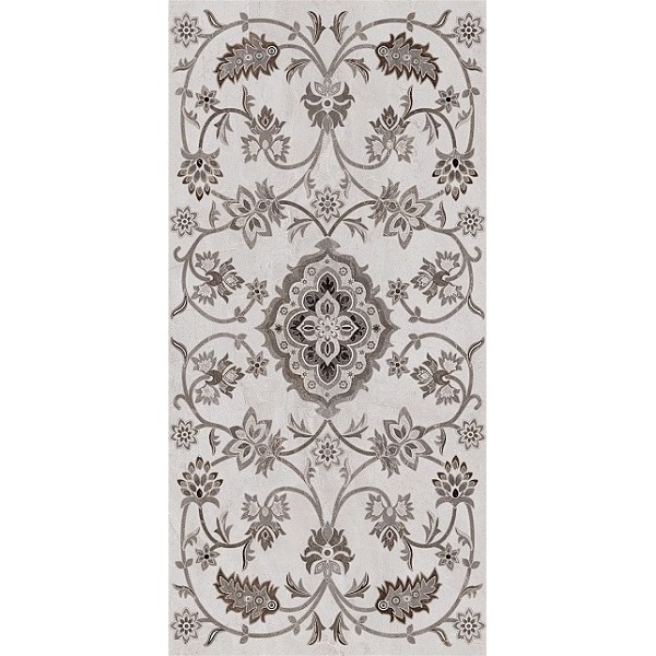 Керамогранит Kerama Marazzi Парнас пепельный декорированный лаппатированный SG810402R 40х80 см с византийским орнаментом. Такой рисунок хорошо отражает стилистику дворцовых интерьеров Санкт-Петербурга. В упаковке 4 штуки общей площадью 1,28 м2. Вес упаковки составляет 32,914 кг.