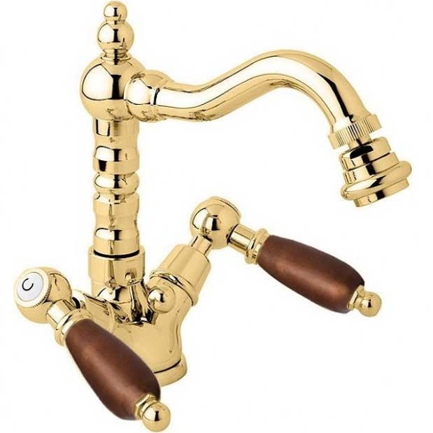 Двухвентильный смеситель с поворотным изливом и аэратором, монтируемый в одно отверстие. Имеет долгий срок эксплуатации за счет качественных деталей, неприхотлив в уходе. Станет прекрасным дополнением ванной комнаты в классическом или ретро стиле.