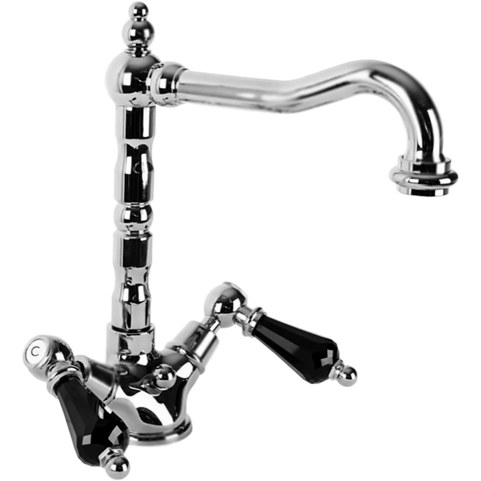 Смеситель для раковины Cezares Diamond DIAMOND-LS2-03/24-Sw-N двухвентильный, монтируемый в одно отверстие, с донным клапаном, с аэратором. Смелое украшение в свете модных тенденций: сверкающие черные кристаллы Swarovski на каплевидных ручках дополнены утонченными классическими линиями корпуса смесителя. Этот образец безупречного мастерства несомненно создаст изысканный акцент в интерьере.