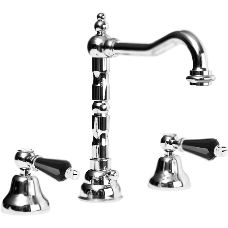Смеситель для раковины Cezares Diamond DIAMOND-BLS2-01-Sw-N двухвентильный, монтируемый в три отверстия, с донным клапаном, с аэратором. Смелое украшение в свете модных тенденций: сверкающие черные кристаллы Swarovski на каплевидных ручках дополнены утонченными классическими линиями корпуса смесителя. Этот образец безупречного мастерства несомненно создаст изысканный акцент в интерьере.