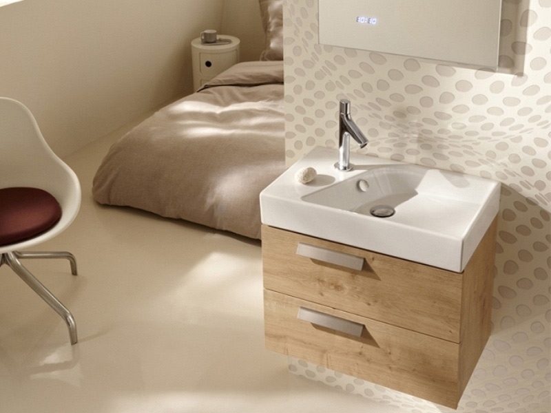 Резкие, прямые линии тумбы придадут интерьеру ванной комнаты особый шик.