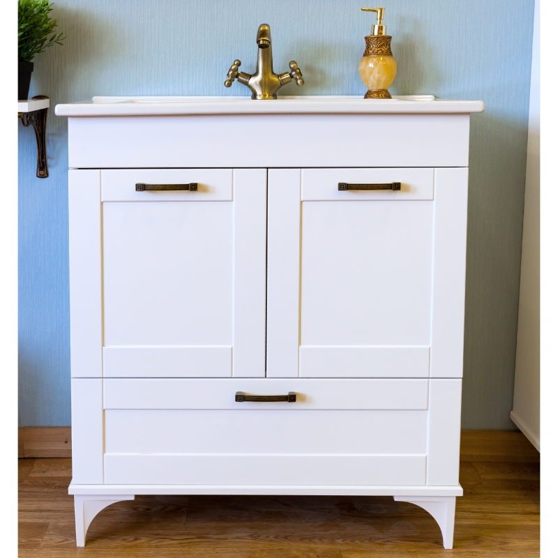 Тумба с раковиной Sanflor Ванесса 75/2 С000005882 напольная изготовлена из качественных материалов в современном элегантном стиле. Поможет в создании ультрамодной ванной комнаты с сохранением актуальной функциональности. Предназначена для использования в условиях повышенной влажности.