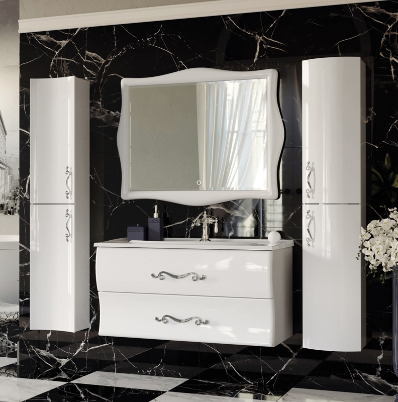 Подвесной шкаф пенал Aima Desing Amethyst 30П R White (У52811) с двумя распашными дверцами с выпуклой формой фасада станет настоящим украшением вашей ванной комнаты.