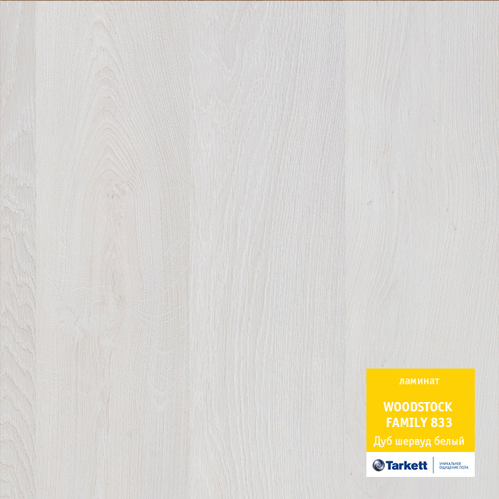 Ламинат Tarkett Woodstock Family Дуб Шервуд белый. Размер панели: 1292х194х8 мм. Порода дерева: дуб. Без фаски. Тип рисунка: многополосный. Соединение: замковое. Поверхность: матовая. Класс износостойкости: 33. Влагостойкость: да. В упаковке шт.: 8. В упаковке 2,005 кв.м.