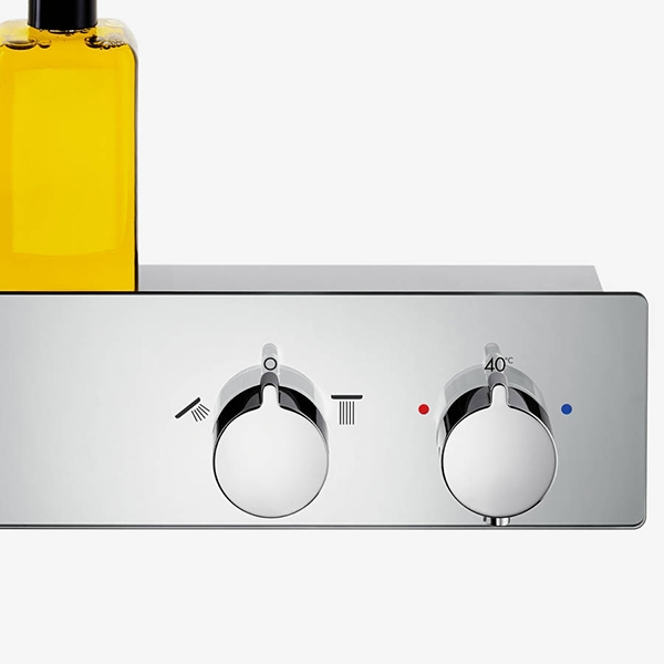 В комплект поставки входит: смеситель для душа с термостатом, грязеулавливающий фильтр.