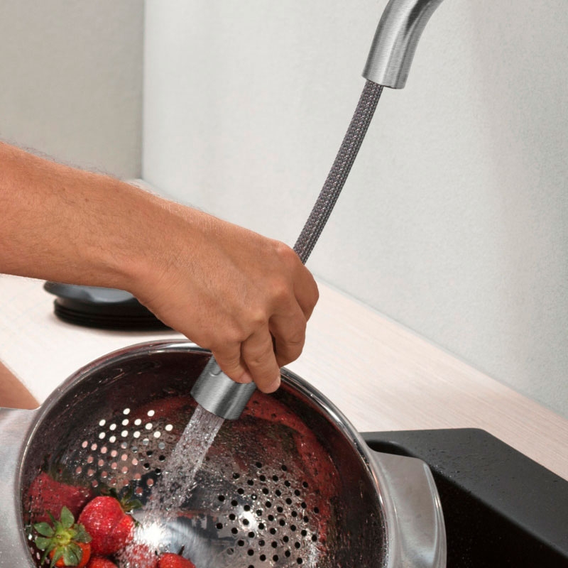Смеситель для кухни Hansgrohe Focus M429-H180 71801800 с выдвижным изливом, который удобно использовать для мытья овощей либо габаритной посуды, набора воды в емкости. Функциональный и стильный смеситель украсит интерьер любой современной кухни.